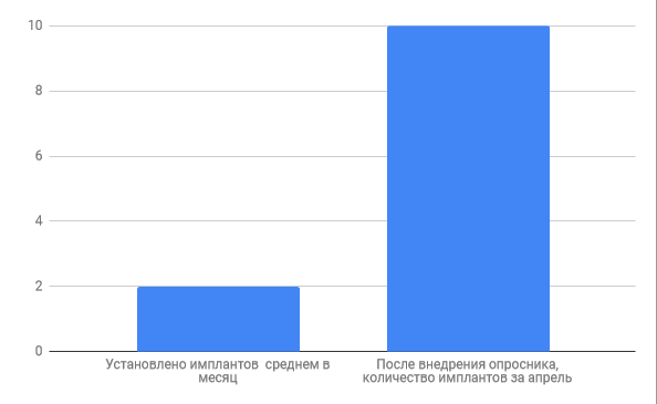 Сначала мы поставили опросник только по имплантации, проверить, как эта технология будет работать на одном направлении. За январь и февраль мы получили 19 обращений