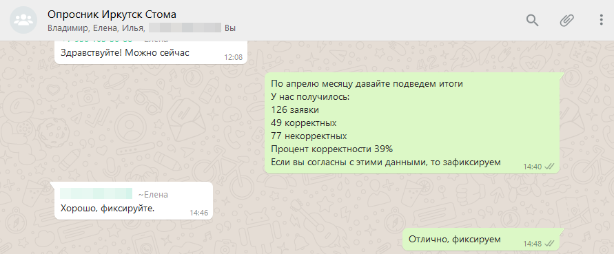 | | | | Работа не останавивается, каждый месяц подводим итоги и делимся наработками | | | | За 4 месяца нашей совместной работой довольны. Раз в несколько недель мы созваниваемся, подводим итоги месяца
